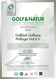 Das DGV-Konzept „Golf und Natur”, an dem die Golfanlage Golfoase Pfullinger Hof seit 2011 teilnimmt, zielt darauf ab, optimale Bedingungen für den Golfsport mit dem größtmöglichen Schutz der Natur zu verbinden. „Golf und Natur” bietet die Chance, im Rahmen einer mehrjährigen Planung, sowohl die Umwelt, als auch die pflegerischen Gegebenheiten zu erfassen und in planbaren Schritten zu verbessern. Da sich Umweltverbesserungen oft nicht kurzfristig einstellen, ist für die Umsetzung ein Zeitraum von mindestens zwei Jahre vorgesehen. Durch die vorbildliche Vorarbeit der Golfoase Pfullinger Hof konnte der Anlage bereits 2011 die Urkunde in Bronze verliehen werden und eine weitere Auszeichnung in Silber erfolgte Ende des Jahres 2012.